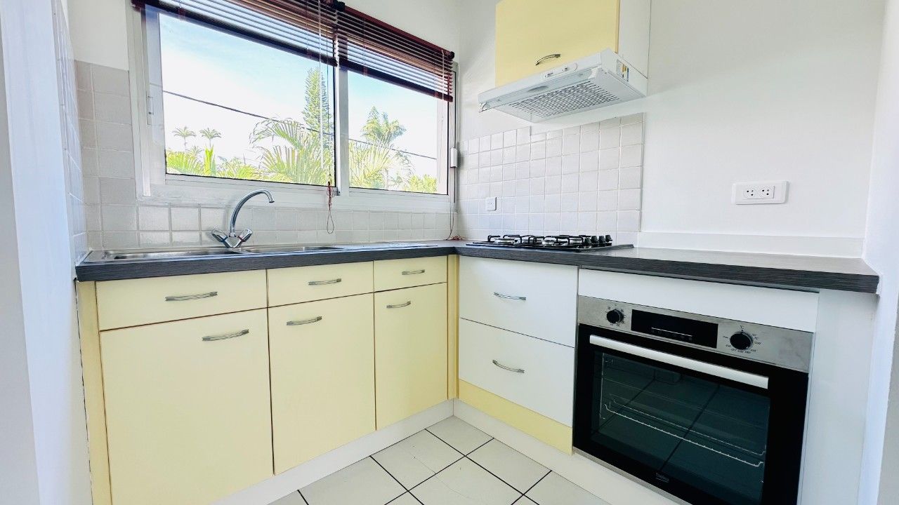 La cuisine ouverte, aménagée et équipée (plaque gaz, four, hotte), dispose d’un coin repas convivial.