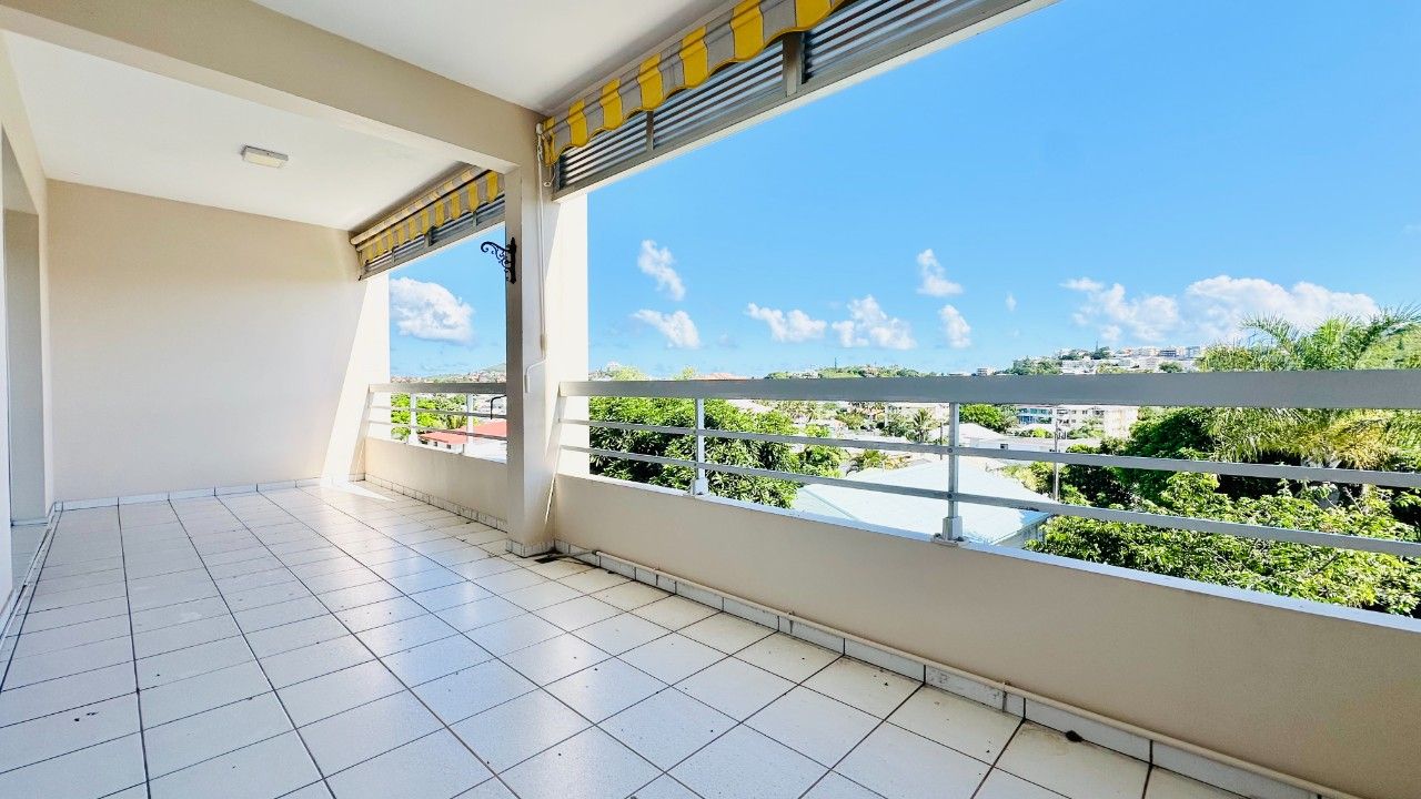 L’appartement comprend un séjour avec volet roulant électrique, ouvert sur une spacieuse terrasse couverte de 21 m² avec une vue dégagée, idéale pour vos moments de détente ou repas en extérieur.